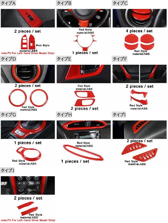 インナー コンソール ギア シフト ボックス/ドア パネル グリップ ハンドル/AC 吹き出し口 カバー トリム レッド 適用: スバル BRZ/トヨタ GT86 2013-2021 タイプE・タイプG AL-PP-4157 AL