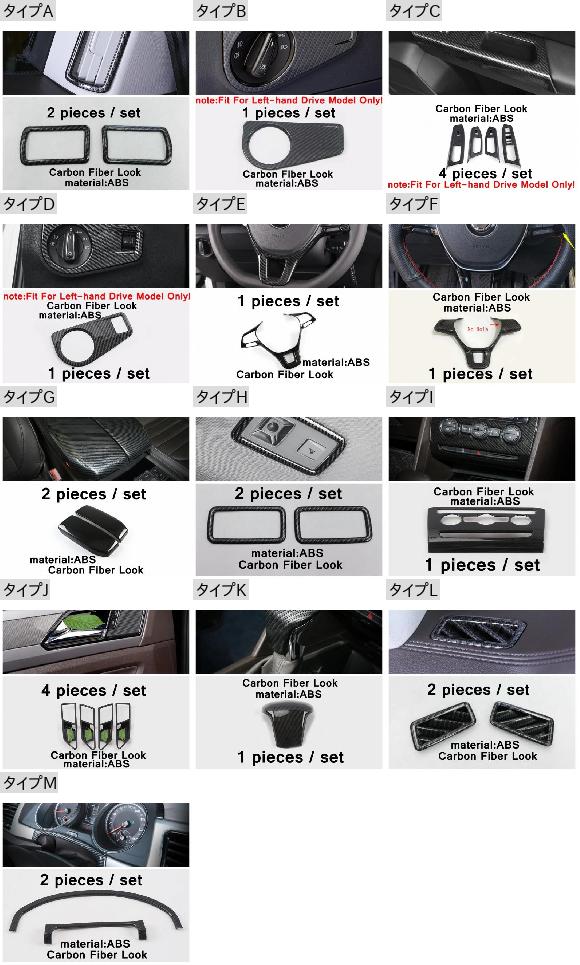 カーボンファイバー アクセサリー 適用: VW フォルクスワーゲン/VOLKSWAGEN アトラス/テラモント 2017-2020 インストルメント ゲージ/アームレスト ボックス/ウインドウ リフト タイプB・タイプD AL-PP-4171 AL