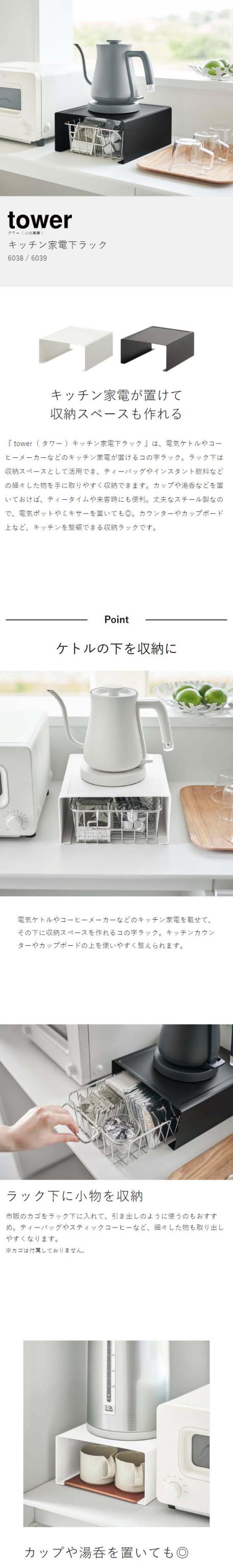 [ キッチン家電下ラック タワー ]山崎実業 tower キッチン 収納 ラック コの字 キッチンラック キッチン家電 電気ケトル コーヒーメーカー 収納ラック キッチン収納 小物収納 おしゃれ モノトーン yamazaki ブラック ホワイト 6038 6039【送料無料】