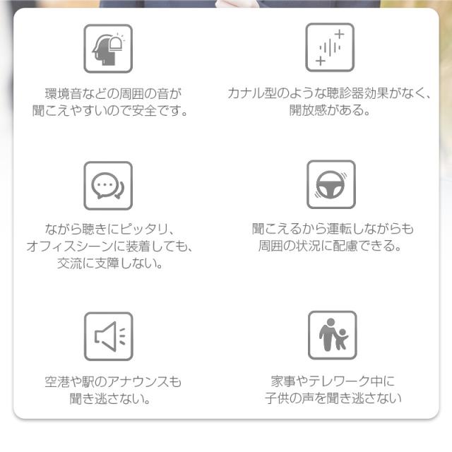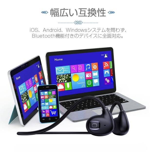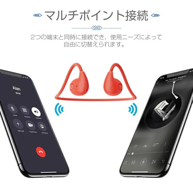 【メリット】イヤホンの振動部分をこめかみ付近に装着して使用するタイプ。周囲の音が聞こえるのがメリットのため、家事・ランニングなど周囲を気にしなければならないシーンにおすすめです。