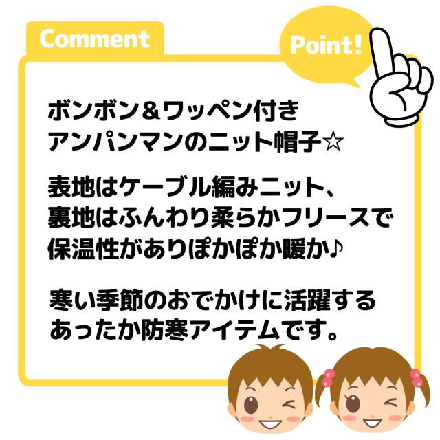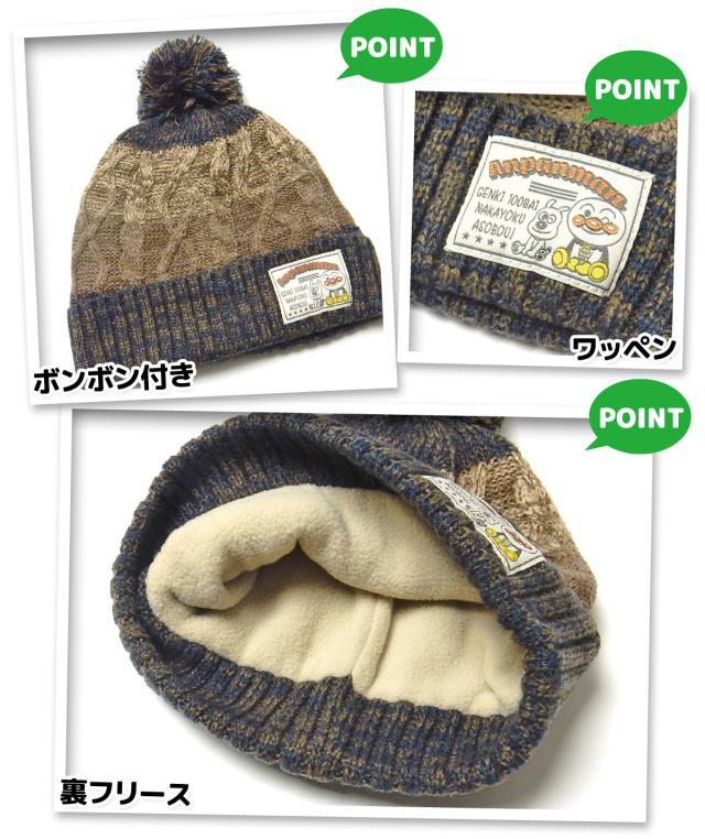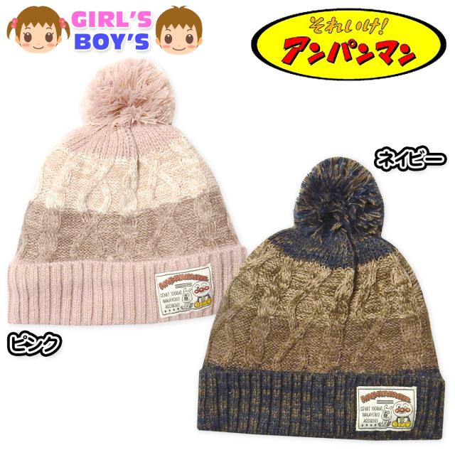 【送料無料】男児 女児 ベビー 裏フリース ニット帽子 アンパンマン あったか ケーブル編み 46-48cm 48-50cm iw-0675【メール便対応】