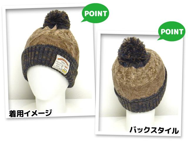 ンのニット帽子☆表地はケーブル編