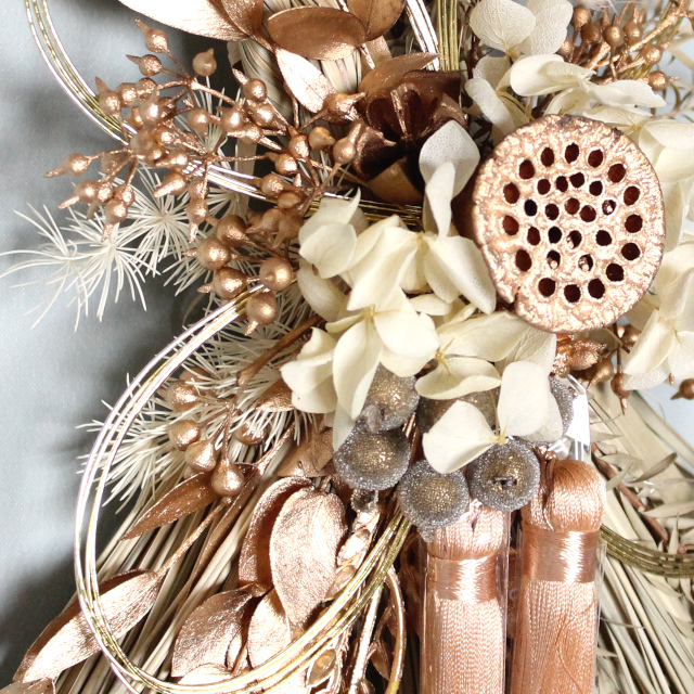 色とりどりの花やパーツが新しい年の始まりを華やかに彩ります。