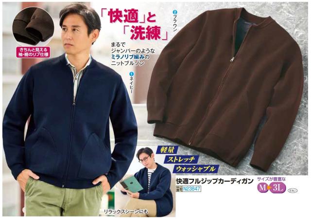 快適フルジップカーディガン 全2色 トップス ミラノリブ ニットブルゾン ネイビー ブラウン メンズ 紳士服 シニア 男性 シニアファッション 50代 60代 70代 80代 父の日 お父さん シンプル アウター 上着 ニットジャンパー 紺色 茶色 軽い ストレッチ 前開き