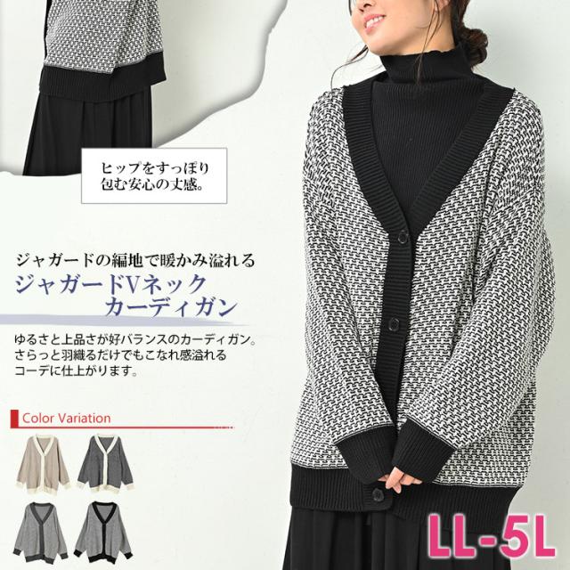大きいサイズ レディース 長袖トップス 長袖カーディガン ニットカーディガン 大きめカーディガン 羽織り カーディガン カーデ 長袖 リンクス柄 ダブルジャガード ライトアウター 防寒 秋服 冬服 秋トップス 冬トップス 前開きデザイン 前開きボタン フロントボタン Vネック リブ お尻が隠れる着丈 お尻すっぽり丈 ゆったり 大きめ 体型カバー 寒さ調節 プラスワン 上着 上品 高見え ナチュラル 大人 カジュアル フェミニン ガーリー オフィスカジュアル きれいめ かわいい 着こなし おしゃれ 定番 秋コーデ 冬コーデ ファッション 大きめ 女性 婦人用 ミセス 30代 40代 50代 2022 秋 冬 黒 ベージュ グレー LL 3L 4L 5L XXXXL 2XL 3XL 4XL 13号 15号 17号 19号 on-aw-tp0284