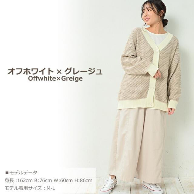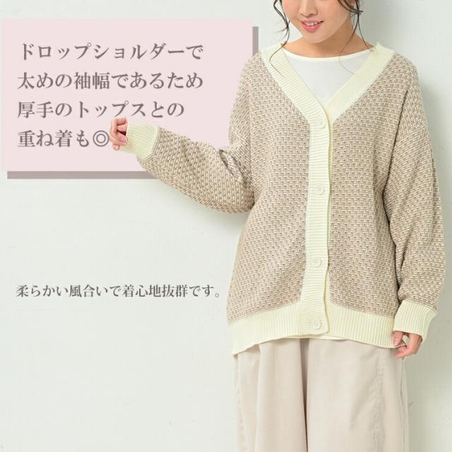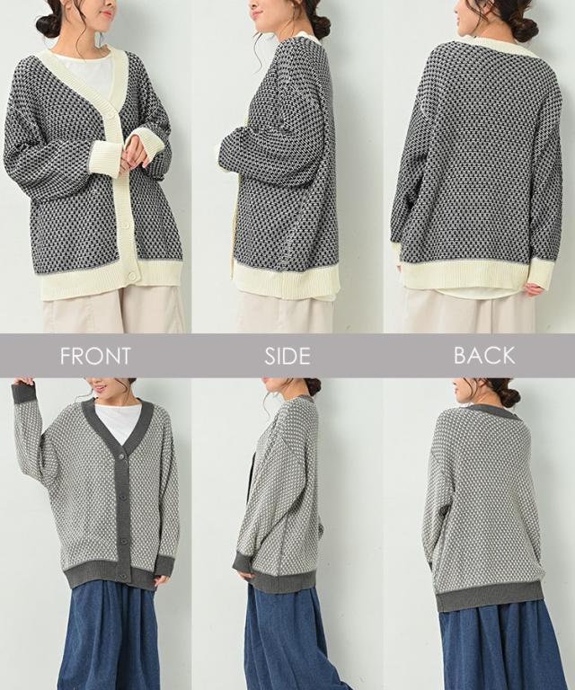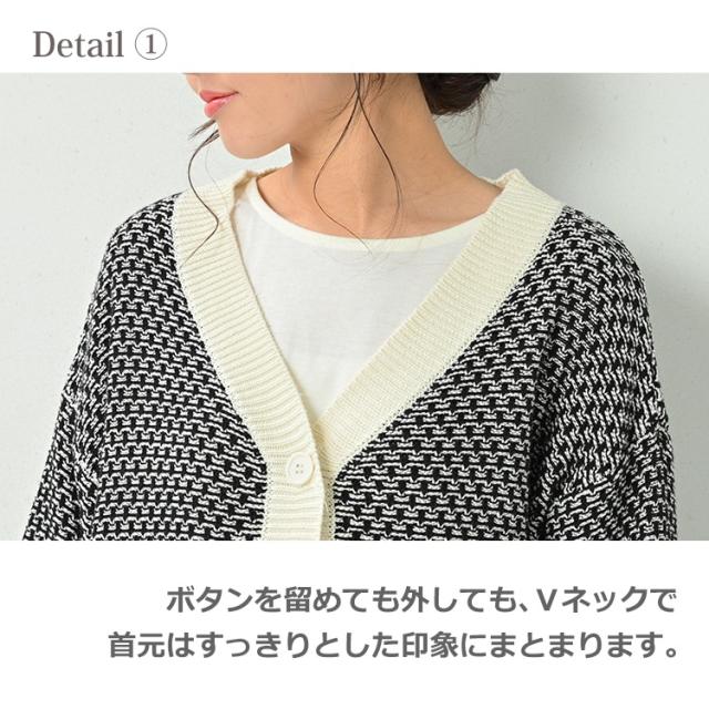 【送料無料※沖縄/北海道対象外】ゆるさと上品さが好バランスのジャガードVネックカーディガン。