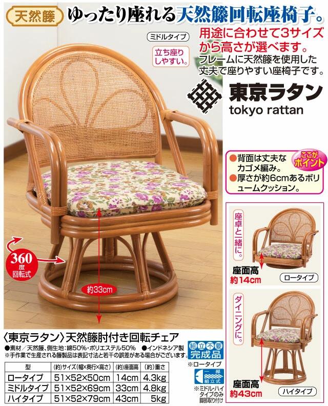 椅子 回転 肘掛け 低い 木製 回転チェア 天然籐 おしゃれ 家具 【東京ラタン 天然籐 肘付き回転チェア ロータイプ】 【送料無料】ゆったり座れる天然籐回転座椅子。 dap