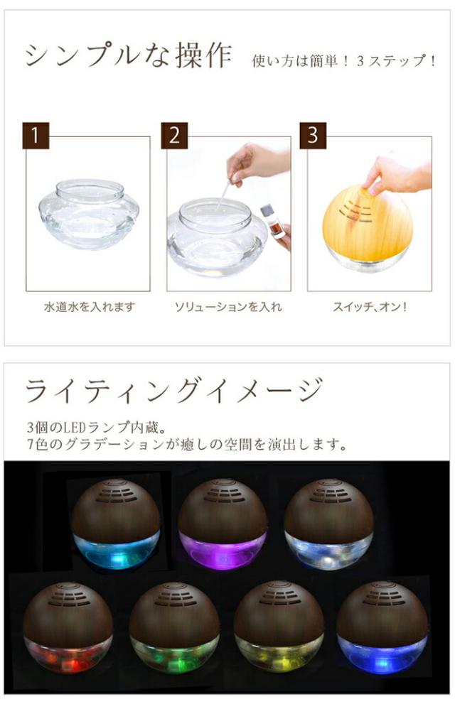 商品詳細 : 水フィルターと専用のアロマソリューションの効果でお部屋の空気を除菌・消臭!ウイルス対策にも!天然アロマ成分とLEDの優しい光で癒しの空間を演出します。