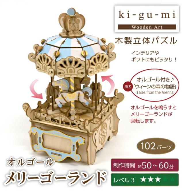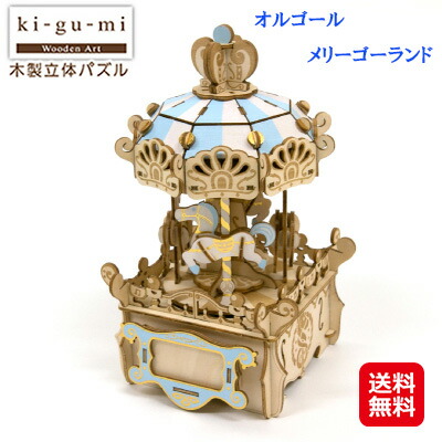 メリーゴーランド 模型 立体パズル 木製 木のおもちゃ パズル 【ki-gu-mi オルゴール メリーゴーランド】【送料無料】 作って、飾って、使える木製立体パズルシリーズ sl