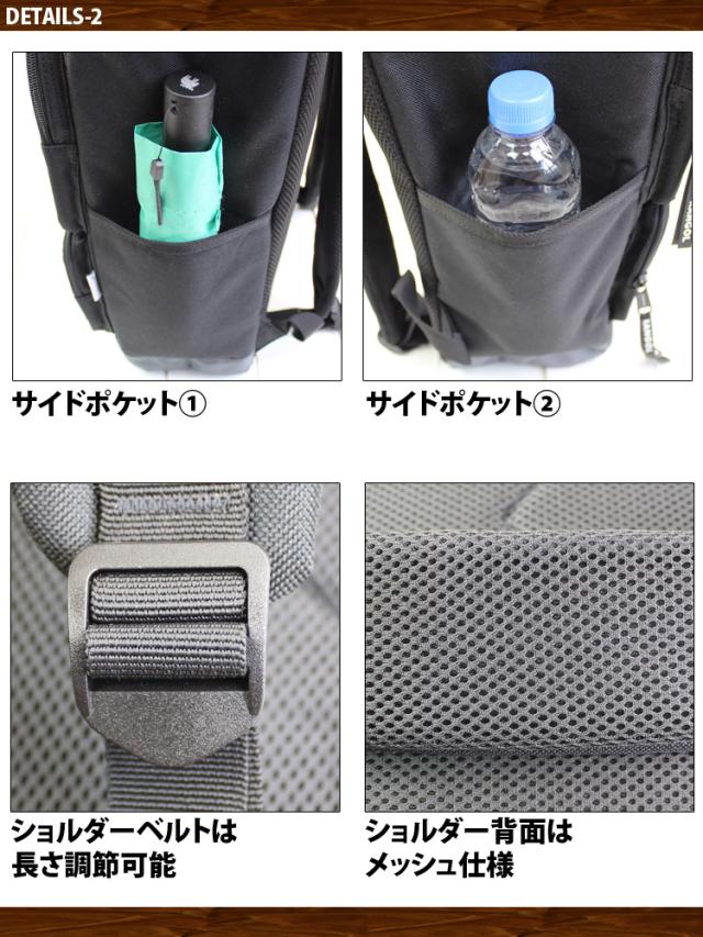 フロント部分に大きなポケットを2つ取り付けた大容量のスクエア型リュック。