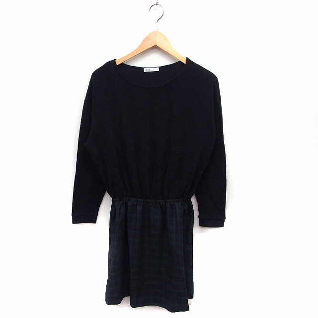 【中古】サードバイヴァンキッシュ 3rd by VANQUISH 切替 ワンピース フレア 長袖 ロング 無地ニット チェック柄 M