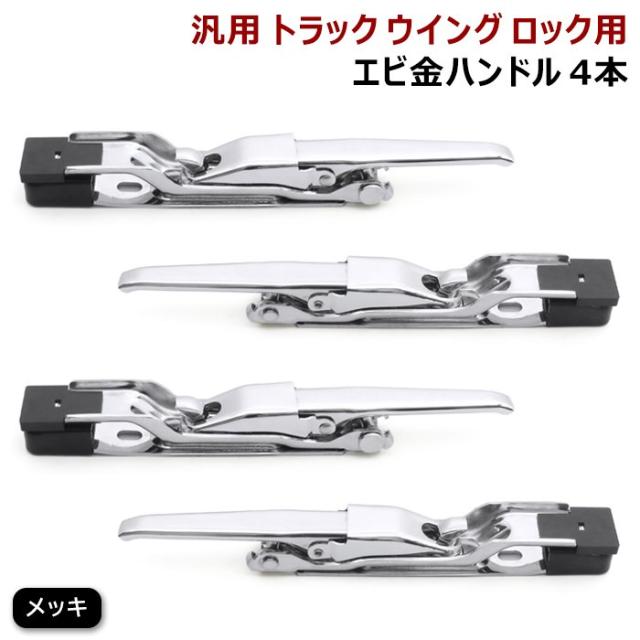 汎用 トラック ウィング用 メッキ エビカン バネカン 4本 セット 土台付き 新品 ウイング ロック エビ金 ハンドル 4個 スチール製 デコトラ