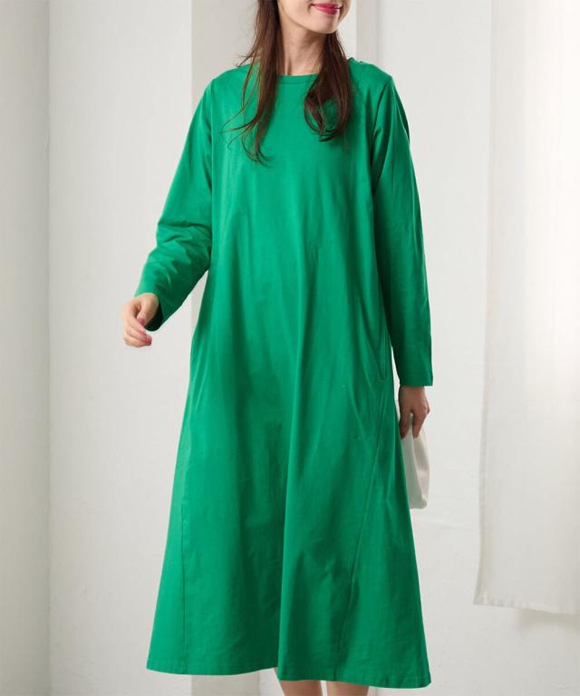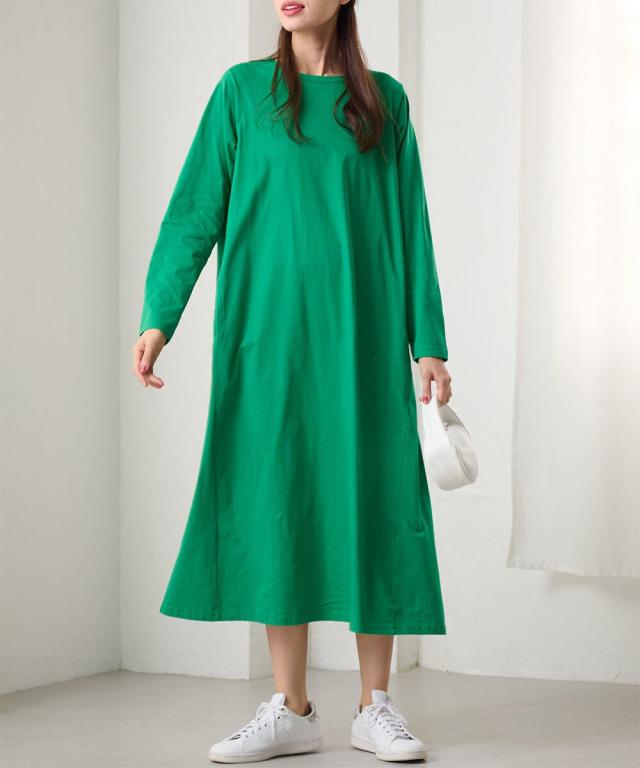 Beautiful Cottonを使用したベーシックなポケット付ワンピース。地球にも優しいオーガニックコットンを100%使用!UVカット機能付 [ポイント]