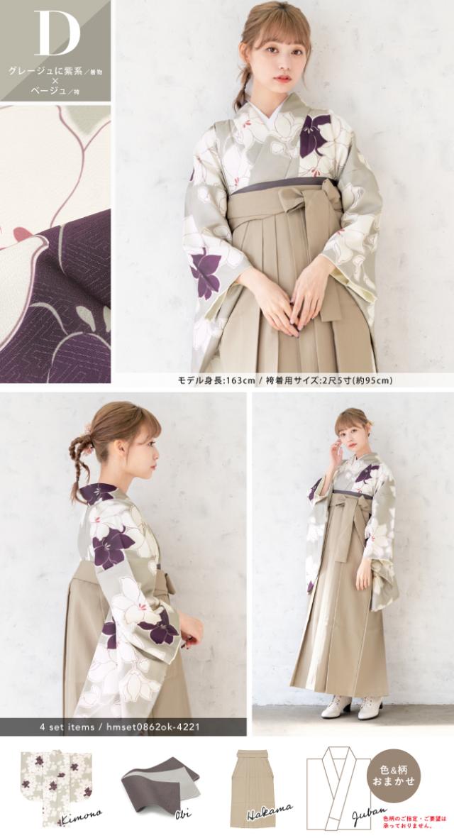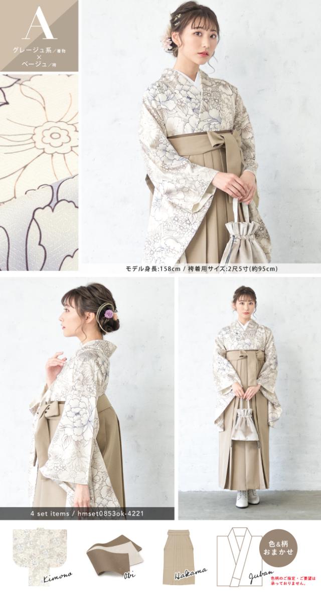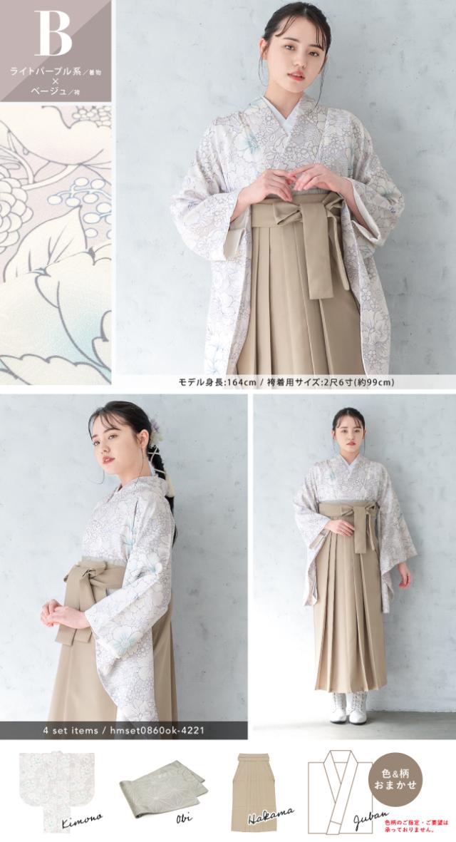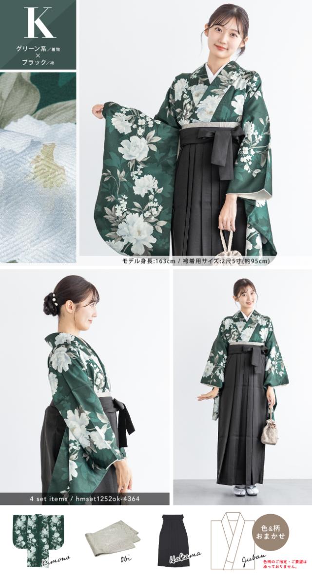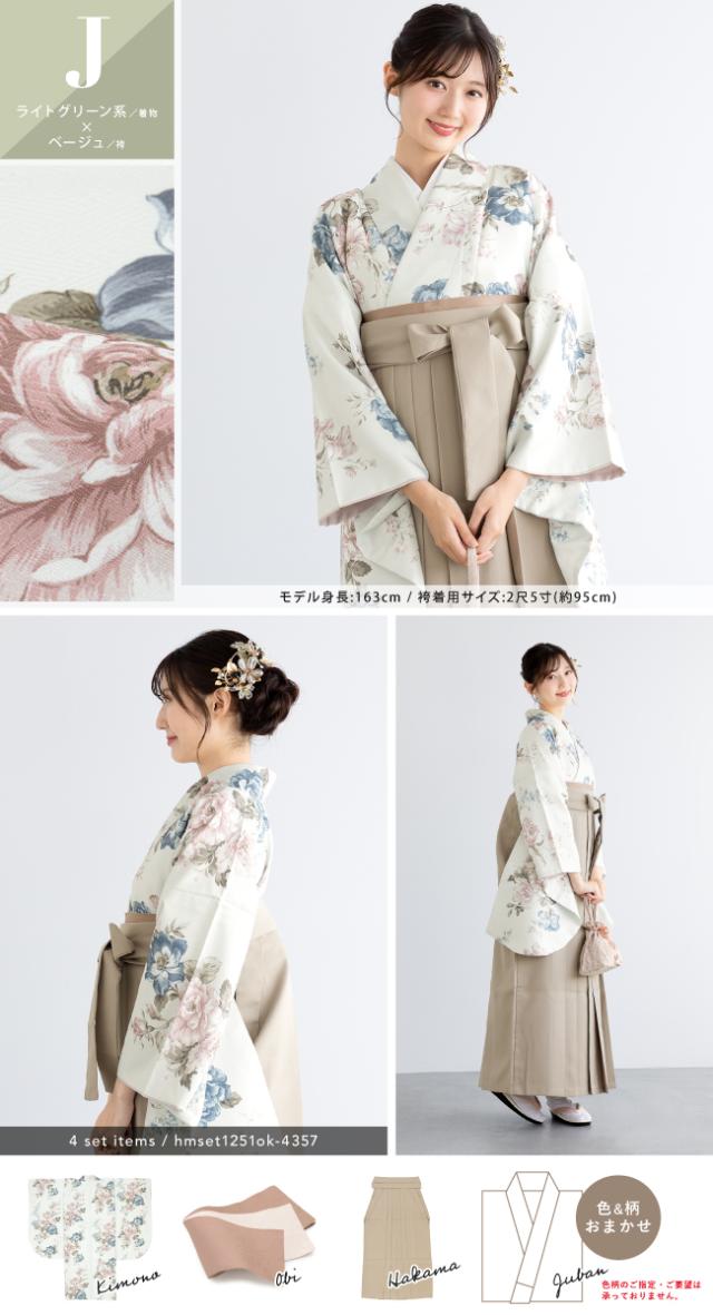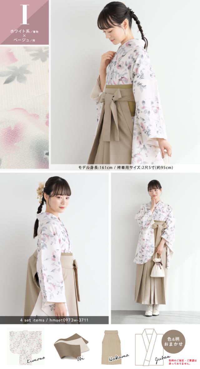 袴セット 卒業式 大学生 レディース 女性 小学生 ジュニア 子供 4点セット 白 紫 緑 紺 黒 グレー ベージュ ピンク 牡丹 百合 椿 薔薇 花柄 着物セット 購入 販売 創美苑 送料無料 身長138から175cm対応