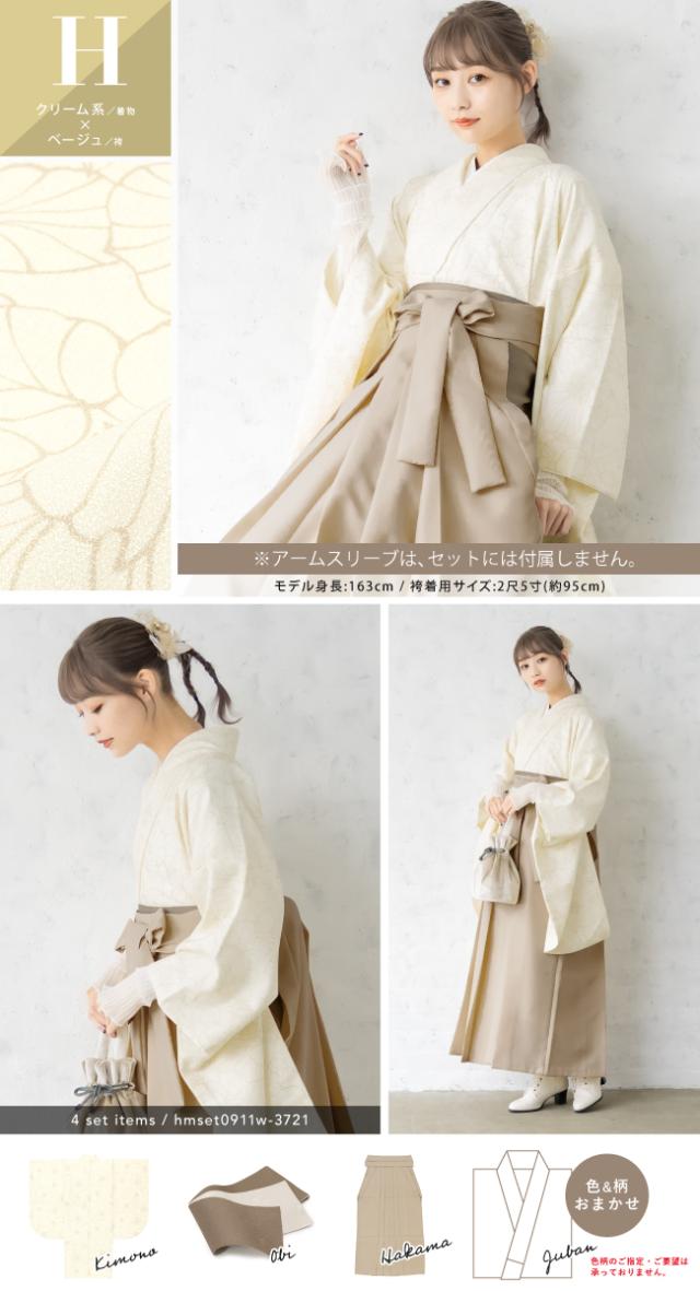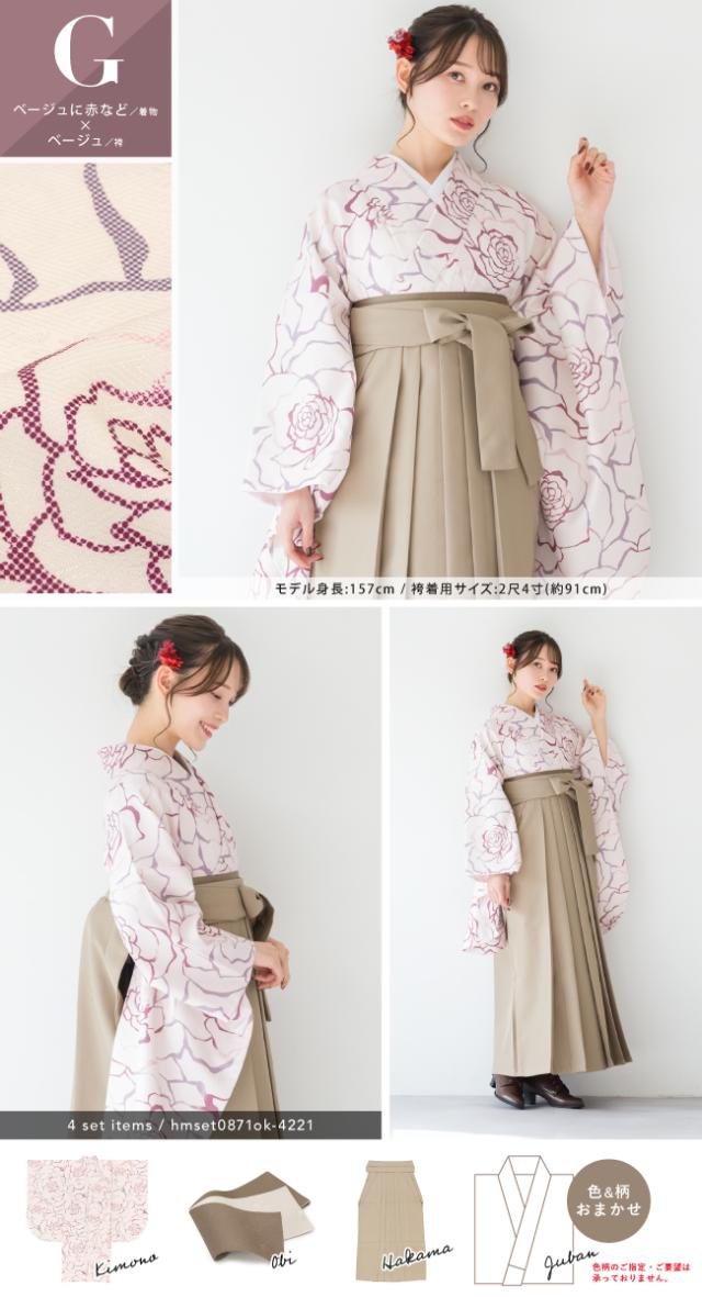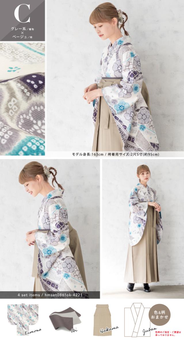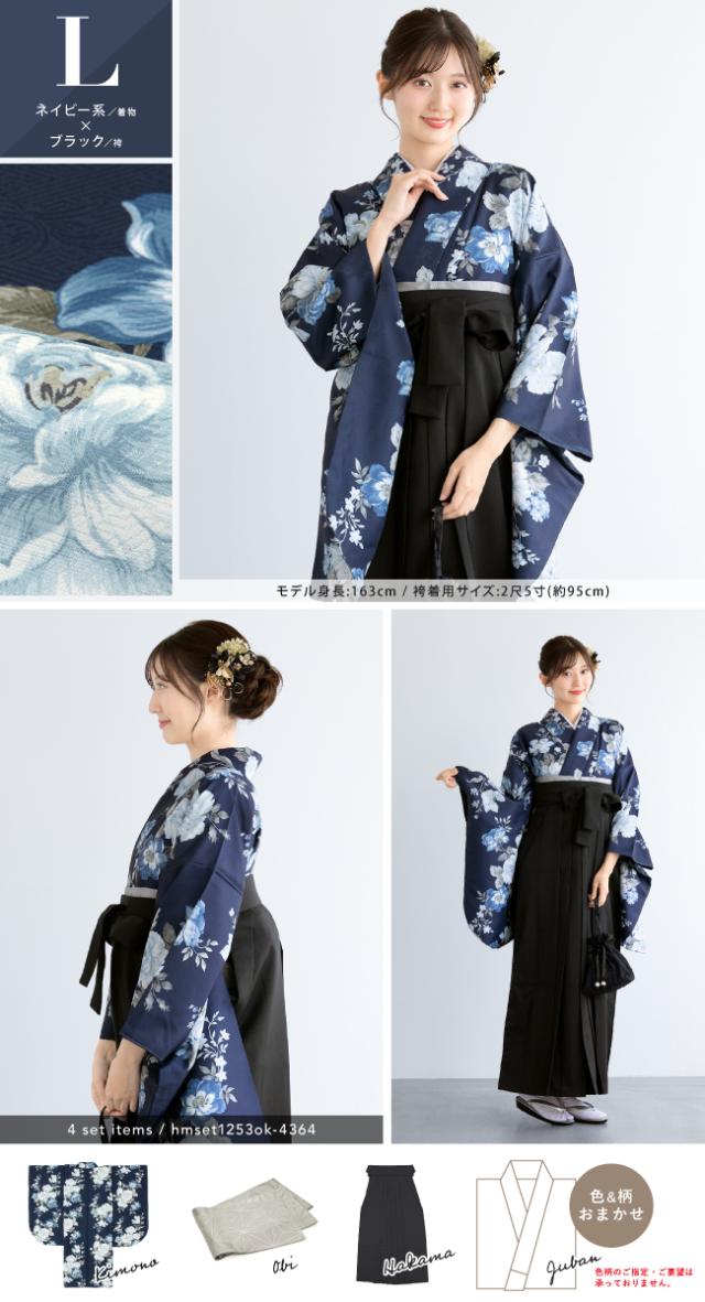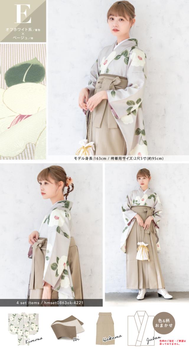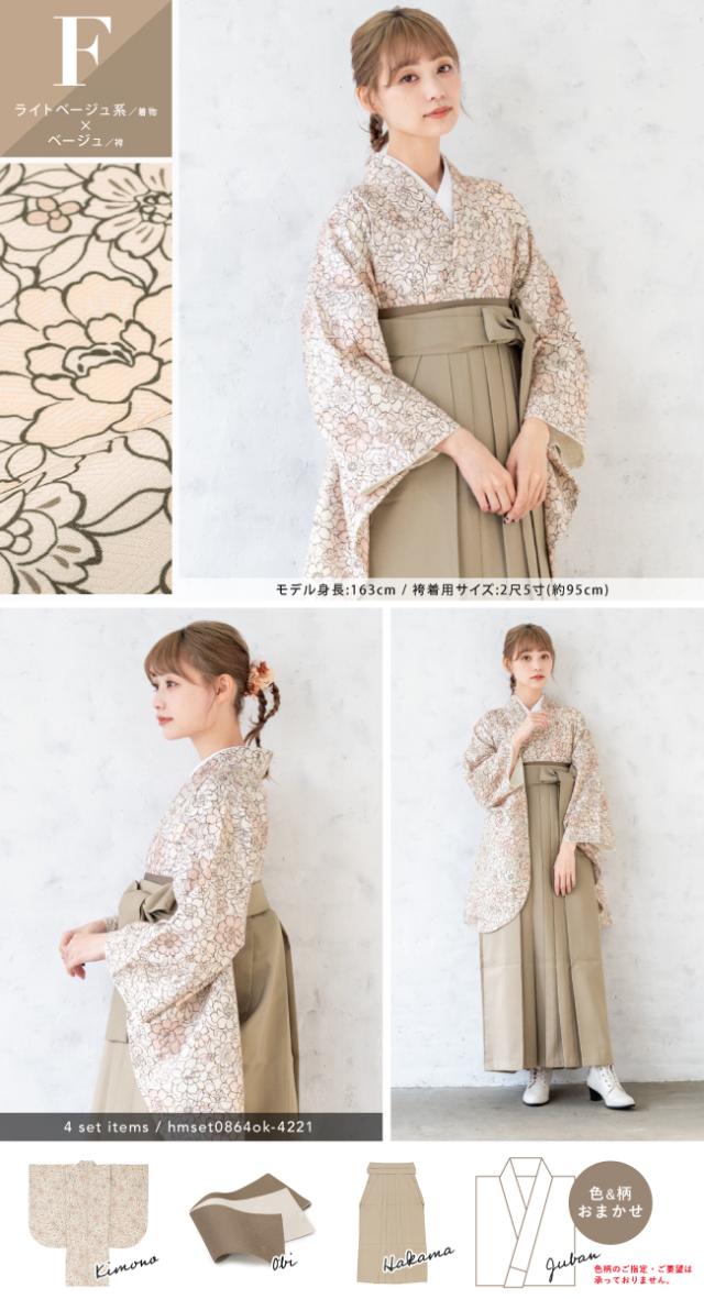 袴セット 卒業式 大学生 レディース 女性 小学生 ジュニア 子供 4点セット 白 紫 緑 紺 黒 グレー ベージュ ピンク 牡丹 百合 椿 薔薇 花柄 着物セット 購入 販売 創美苑 送料無料 身長138から175cm対応