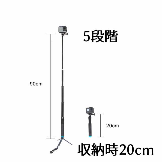 延長ポール 自撮り棒 セルカ棒 Gopro9 一脚 三脚 25-90cm 自撮り棒 ハンドヘルド 拡張可能 アルミ合金 調整可能ポール スマホ用ホルダー付き 超軽量5段収納式 iPhone用 Androidスマートフォン GoPro Hero 用 SJCAM用 YI 4K / YIアクションカメラ用