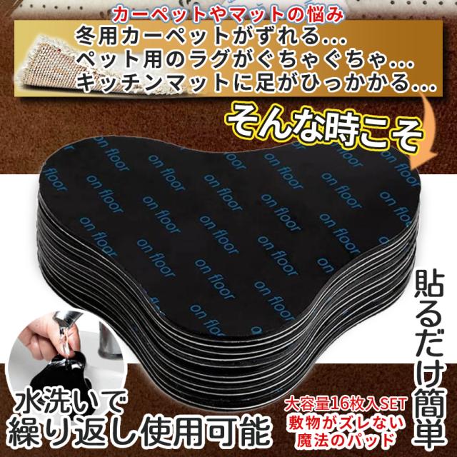 カーペット すべりどめ シート パッド 16枚 入り マット ラグ ズレ 防止 すべり止め 滑り止め シール テープ 吸着 強力 絨毯 玄関 キッチン 洗面所 トイレ 繰り返し 利用 貼るだけ 簡単 取り付け 家具 16-MATTOME 送料無料