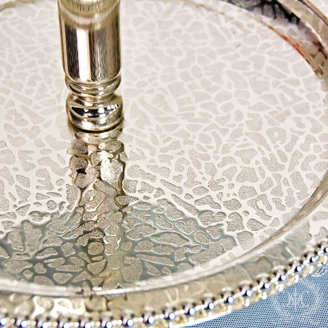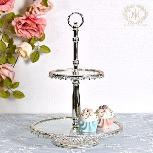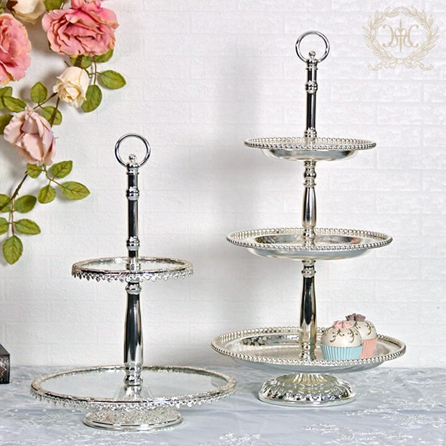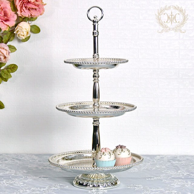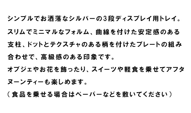 シンプルでお洒落なシルバーの3段ディスプレイ用トレイ。 |