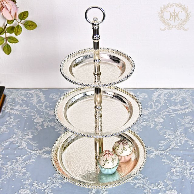 【ハルモニア】シルバー3段ディスプレイトレイ 10214【アフタヌーンティー ヌン活 ケーキスタンド 食器 アンティーク バレンタイン ホワイトデー 母の日 父の日 敬老の日 クリスマス xmas】