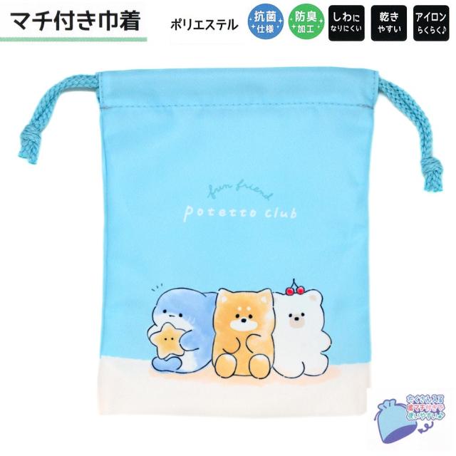 メール便 OK マチ付き 巾着 女の子 向け ポテットクラブ シワになりにくい 乾きやすい アイロンらくらく ウサギ サメ 犬 クマ クラックス おしゃれ で かわいい 文房具