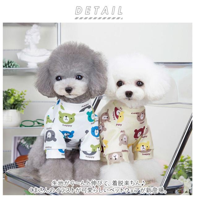 | 商品説明 | ・生地がぐ〜んと伸びて、着脱楽ちん♪くまさんのイラストが可愛らしいペットウェアが新登場。 ・肌触りがツルンと滑らかで、伸縮性抜群の生地がワンちゃんの身体に優しくフィット。ワンちゃんの頭にすっぽりと被せて、前足を通すだけで着せ替えが簡単なプルオーバータイプ。 ・薄手の生地感ながら、裏地にもわずかに起毛させた滑らか素材を使用しているので、保温性もばっちり。まだ肌寒さの気になる春先や秋口のお散歩に最適。 ・トイレの時にお洋服を汚す心配のない、お腹周りが開いたデザインで、室内用ウェアにもオススメ。 ・ご家庭で手軽にお洗濯ができるポリエステル素材なので、こまめにお手入れしていつでも清潔。(※手洗いでのお洗濯をお勧めいたします。ドライクリーニングはご利用いただけません。) ・SサイズからLサイズまでの3つのサイズから、ぴったりサイズがチョイス可能!超小型犬から、体重6kg程度までの小型のワンちゃんに最適なサイズ感。小さなサイズはネコちゃんにも。 ・ワンちゃんがオシャレに着こなせるハイネックスタイルに、カラフルなくまさんフェイスがデザインのアクセント。 |