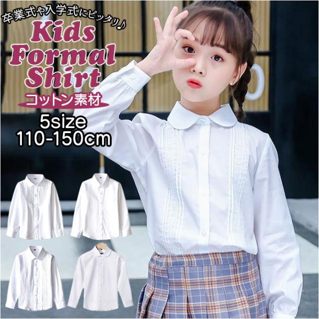 女の子 ブラウス キッズ 長袖 通販 襟付き シャツ 白 トップス フォーマル ジュニア スーツ インナー 子供服 子ども服 女の子 ガールズ 入学式 卒業式 きれいめ おしゃれ 入園式