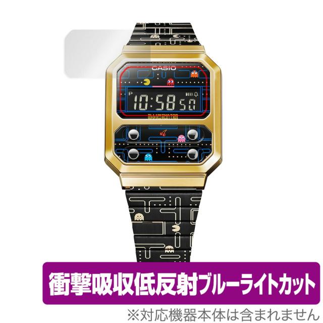 CASIO PAC-MANコラボレーションモデル A100WEPC-1BJR 保護 フィルム OverLay Absorber for A100WEPC-1BJR 衝撃吸収 低反射 ブルーライトカット アブソーバー 抗菌 ミヤビックス