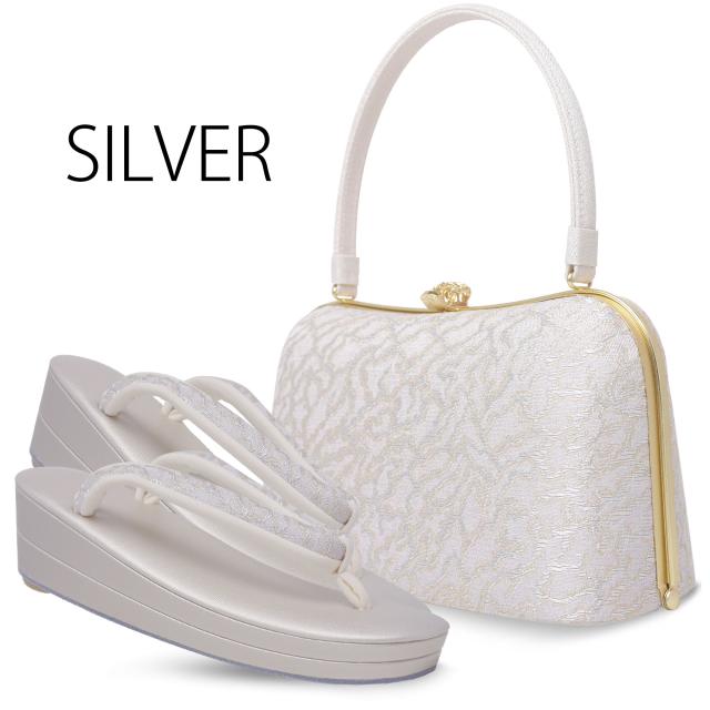 白梅謹製 ブランド 草履 バッグ セット フォーマル 礼装用 3枚芯 選べる2色 シルバー ゴールド ローブデコルテ柄 帯地 フリーサイズ やや大きめ Lサイズ 24.5cm【訪問着 留袖 結婚式 卒業式 入学式 付下げ おしゃれ着】レディース バック 草履バッグ 日本製