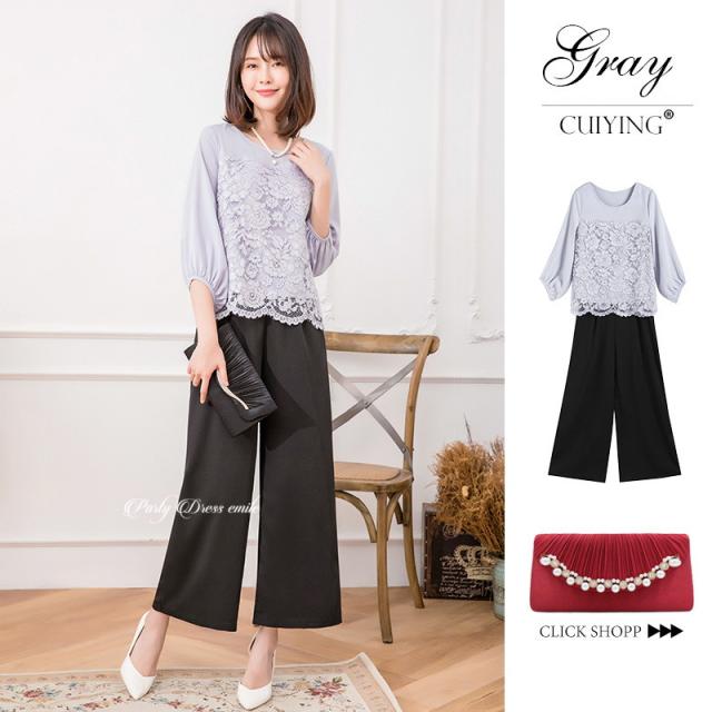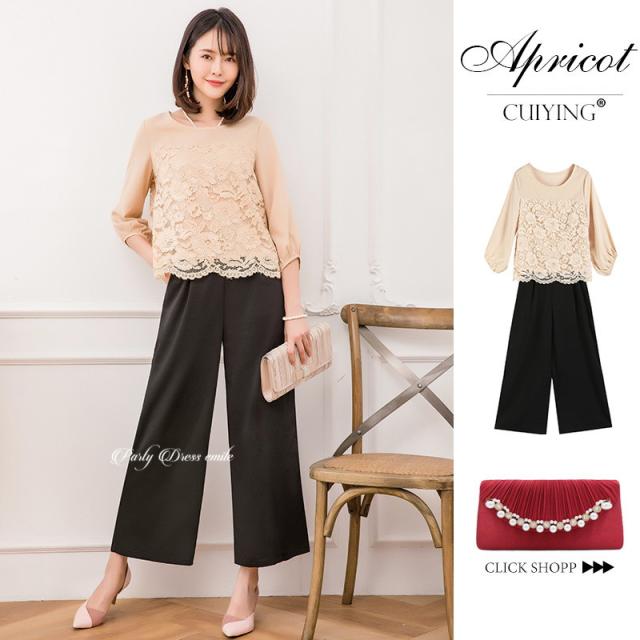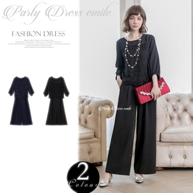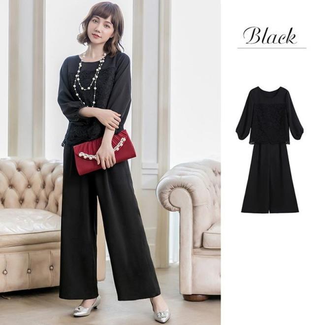 優しい雰囲気漂わせるジョーゼット素材と華やかなレースで作ったパンツドレス