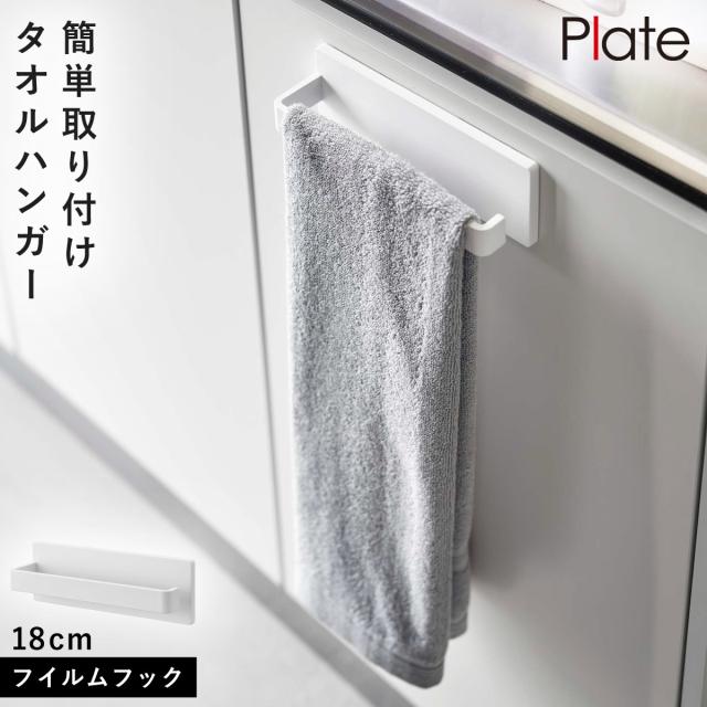 タオルハンガー フィルムフック 光沢面 Plate シリーズ 山崎実業 洗面 キッチン 玄関 リビング 収納 まとめて フィルムフック タオルハンガープレート W18 ホワイト
