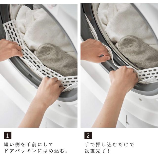 ドラム式洗濯機,ドアパッキン,小物,挟まり,防止,予防,カバー,プレート,plate,乾燥機ok,靴下,ソックス,マスク,簡単設置,スムーズ,不満,イライラ,ストレス,丸洗い,埃,ほこり,ホコリ,流水,目立たない,フィット,ホワイト,白,シリコーン,乾燥機,清潔,こだわりアイテム,シンプル,ベーシック,取付簡単,山崎実業,取り出し,ぴたっと,ピッタリ