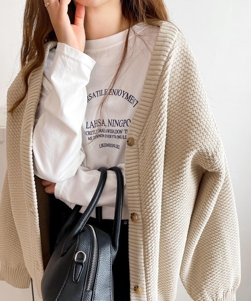 軽めの素材感で秋口から着れる前後2wayのニットカーディガン。