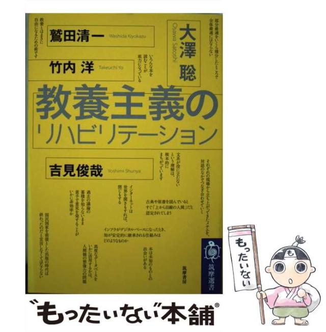 商品名:【中古】 教養主義のリハビリテーション (筑摩選書) / 大澤 聡 / 筑摩書房 [単行本(ソフトカバー)]【メール便送料無料】