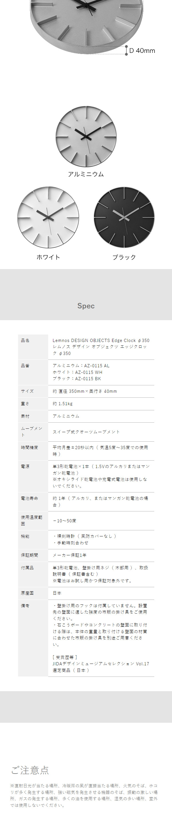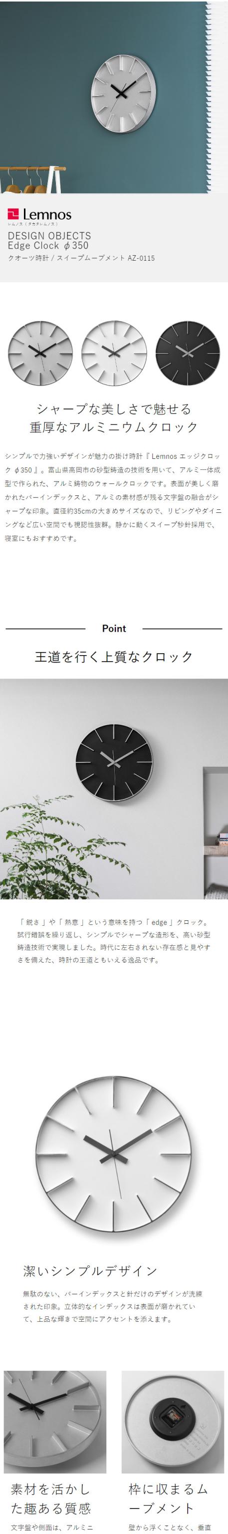 [ Lemnos Edge Clock φ350 ]レムノス 掛け時計 エッジクロック 35cm 壁掛け時計 スイープ 時計 おしゃれ ウォールクロック 静音 掛時計 かけ時計 シンプル モダン タカタレムノス AZ-0115【送料無料】