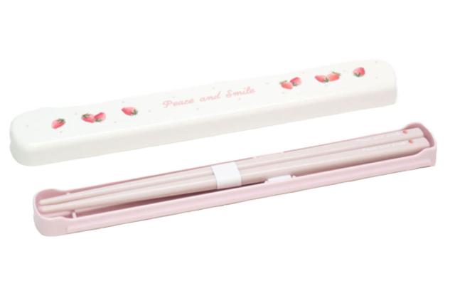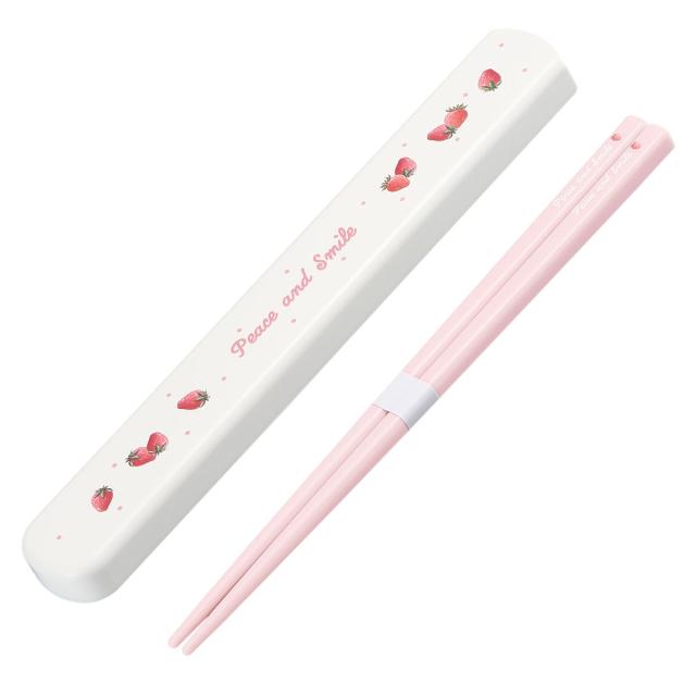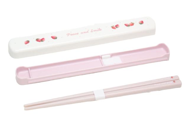箸箱セット 19.5cm Peace and Smile 食洗機対応 抗菌 ( お箸 箸箱 はし箱 携帯箸 日本製 女子 イチゴ 食洗機OK 19.5センチ お弁当用 お弁当用箸 弁当 お弁当 給食 携帯用 女性 いちご )