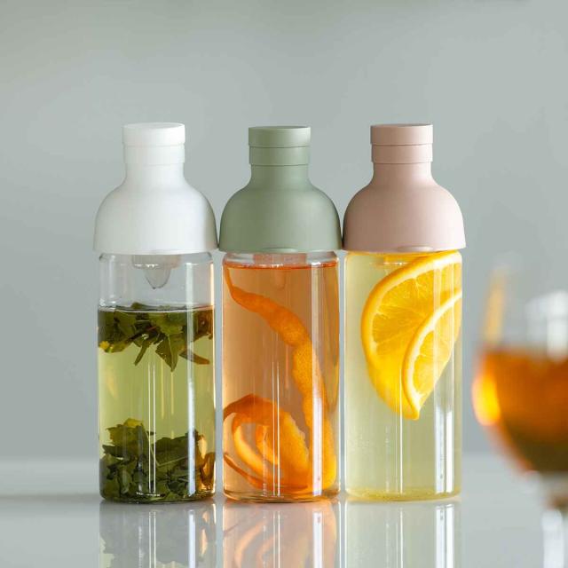 水出し茶を簡単に作れるフィルター付きのボトルです。水出し茶は、水でゆっくり時間をかけて抽出するので、まろやかな味わいになり、茶葉本来の味や香りを楽しめます。夜に作れば、朝には本格的な水出し茶ができているので、素敵な朝時間が過ごせそうです。
