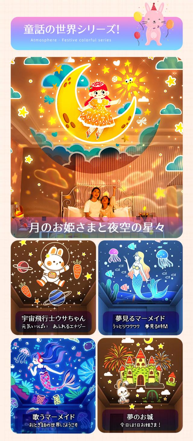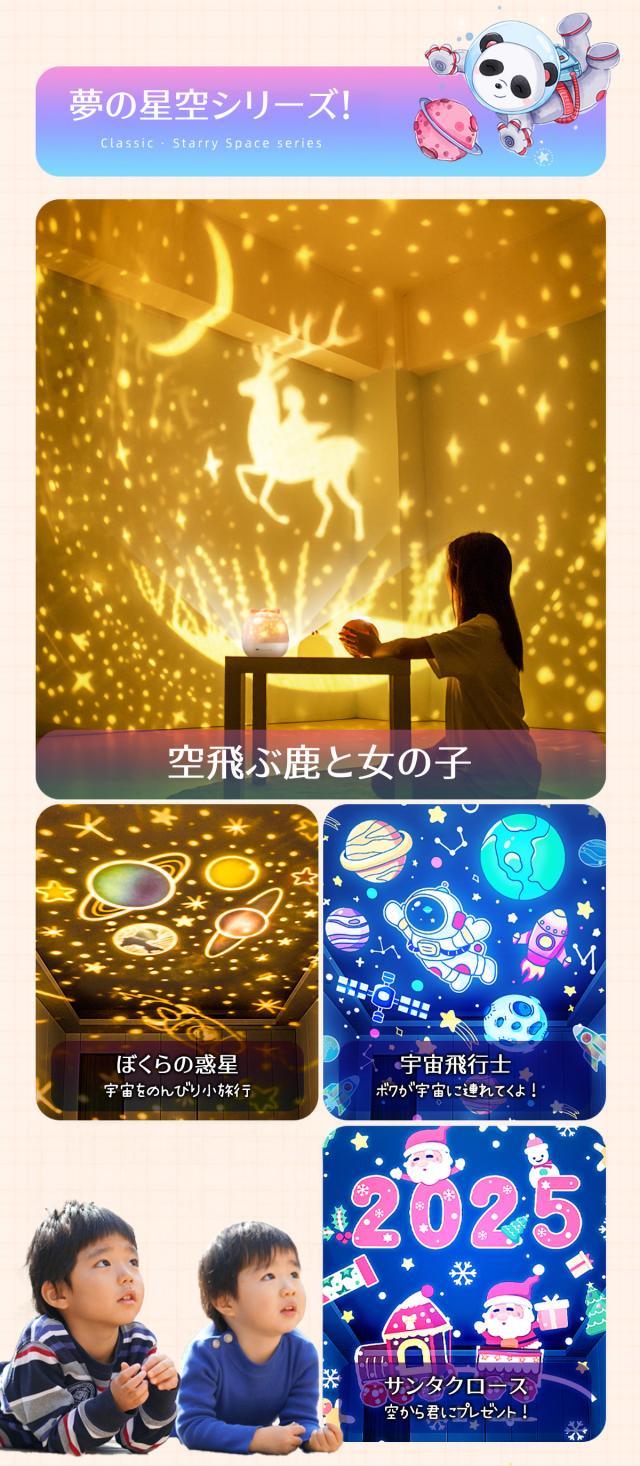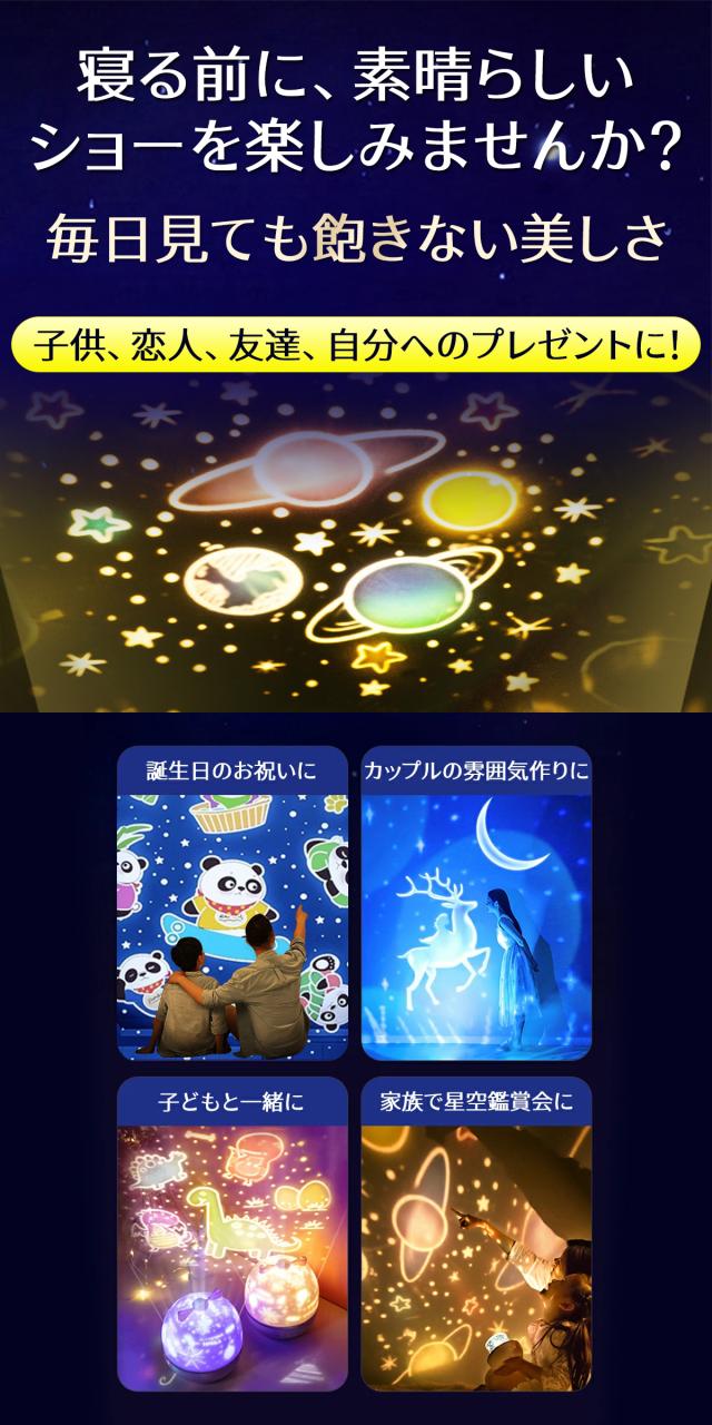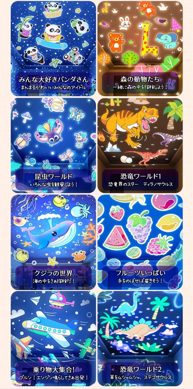 - たくさん絵の、種類があり、ビックリしました。 子供が、これがほしいと言っていたので、買いました。 天井には、絵が映し出されてきれいで、子供も、喜んでいました。壁側には少しぼやけたような感じに映るので...