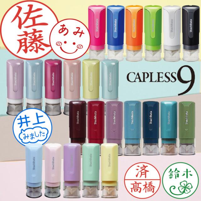 シャチハタ キャップレス9 【NEW!好きが見つかる24色】印鑑 ハンコ 9.0ミリ 別注品 パステル アンティーク オーダー ネーム印 浸透印 認印 判子 飾り枠 フレーム イラスト はんこ 連絡帳 かわいい みました シヤチハタ 添え字 ロゴ【送料無料】