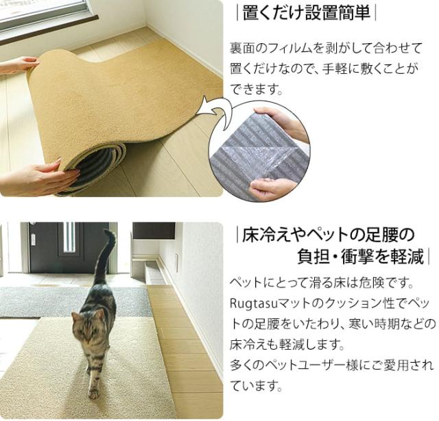 廊下敷き 廊下 マット カーペット 滑り止め 洗える ロングカーペット約60×100cm ラグタス 廊下敷きマット (R) ロールマット ラグ おしゃれ ずれない 吸着 ペット ネコ 犬 床暖房対応 Rugtasu 洗濯機OK じゅうたん 防音 フリーカット 玄関マット ペットマット