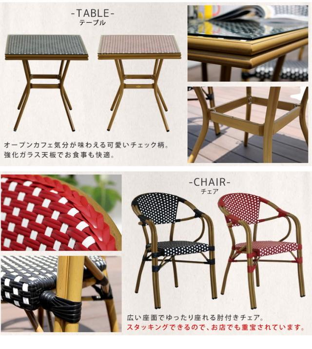 簡単組立、ガーデンテーブル、PEラタン、テラス、庭、レッド、ブラック、アルミ、モダン、スクエア、イングリッシュガーデン、ファニチャー、シンプル、欧州、インテリア、家具、チェア、カフェ