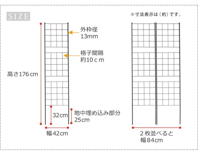 ■商品名 アイアンフェンス 高さ176 スリム「グラフ」 2枚組