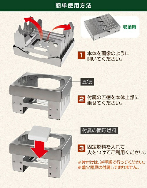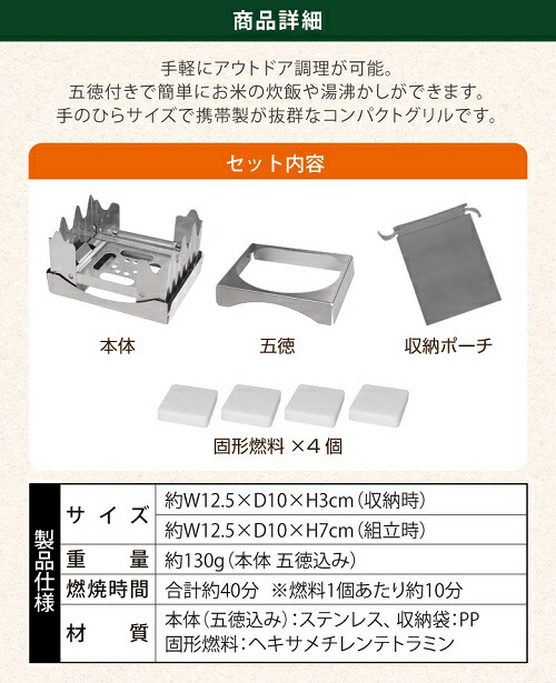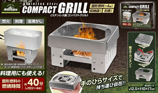 ステンレス製コンパクトグリル(固形燃料4個付)525245 HAC2806 コンロ ミニコンロ アウトドア ストーブ 焚火台 調理コンロ キャンプ用コンロ コンパクト 持ち運び簡単 ステンレス