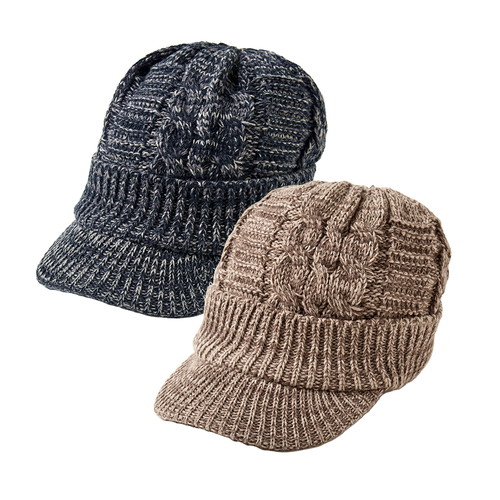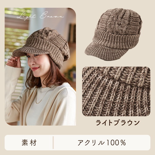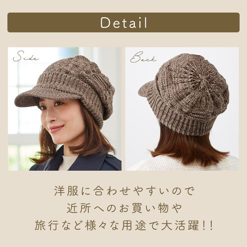 小顔魅せニットキャスケット(ライトブラウン/ダークグレー)キャスケット すっぴん帽子 小顔魅せ アウトドア ガーデニング