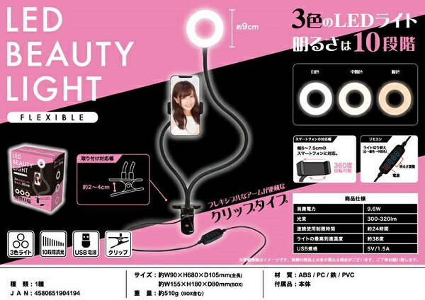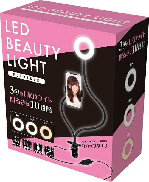 【期間限定40%OFF】3色の LEDビューティーライト フレキシブル(クリップタイプ)明るさは10段階 メイクアップミラー 卓上ミラー ワンタッチ LEDライト 点灯 倍率 照明 手鏡 化粧鏡 母の日 SNS