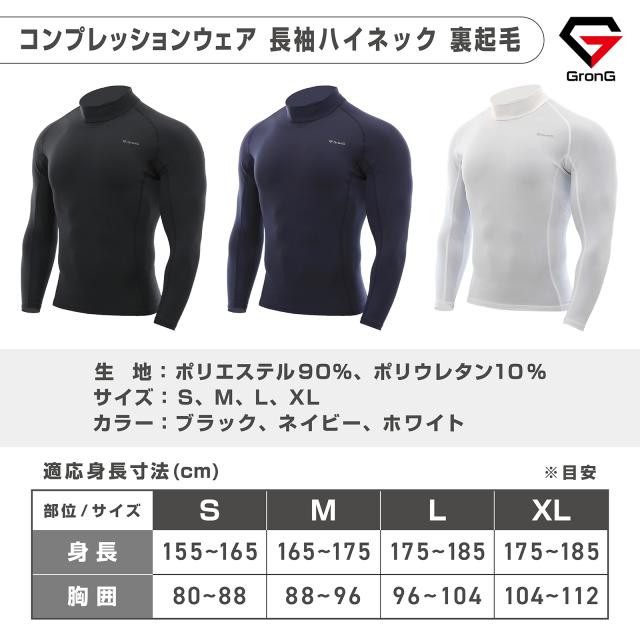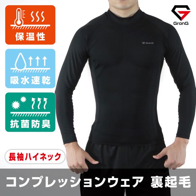 グロング GronG コンプレッションウェア 長袖 ハイネック 裏起毛 メンズ 冬用 吸水速乾 抗菌防臭加工 インナーシャツ
