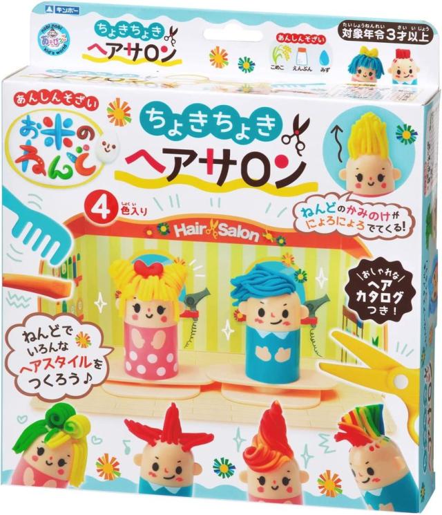 ・内容物:お米のねんど30g×4色(赤・黄色・緑・青)、人形、はさみ、バリカン、くし、お店、ヘアカタログ