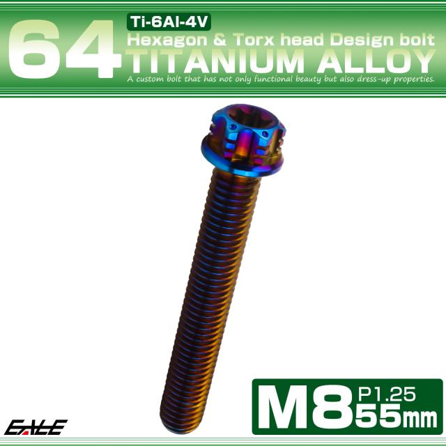 チタンボルト M8×55mm P1.25 六角ボルト トルクス穴 フランジ付き 焼きチタンカラー ホール JA1399