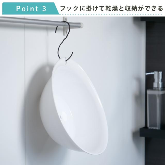 フックに吊り下げて収納できるので衛生的にお使いいただけます。効率的に水垢やカビ対策ができます。