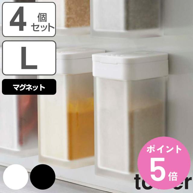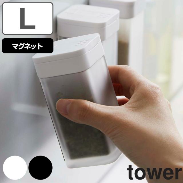 山崎実業 tower マグネットスパイスボトル タワー L 4個セット ( 4903208058278 タワーシリーズ 磁石 調味料入れ 調味料ボトル 調味料容器 壁面 片手 スライド 調味料 スパイス ボトル 容器 保存 ホワイト )