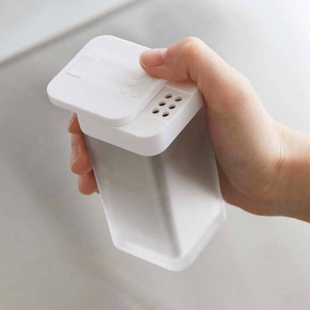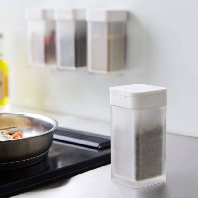 コンロ周りに並べて置きがちな調味料をマグネットで浮かせて収納する新しい発想の調味料容器シリーズです。浮かせて収納することでコンロ周りやシンク周りなど作業スペースが広々と使えて調理や掃除の作業効率もアップします。容器は半透明なので中身や残量が一目で分かります。複数並べてもスッキリ見えるシンプルなデザインです。